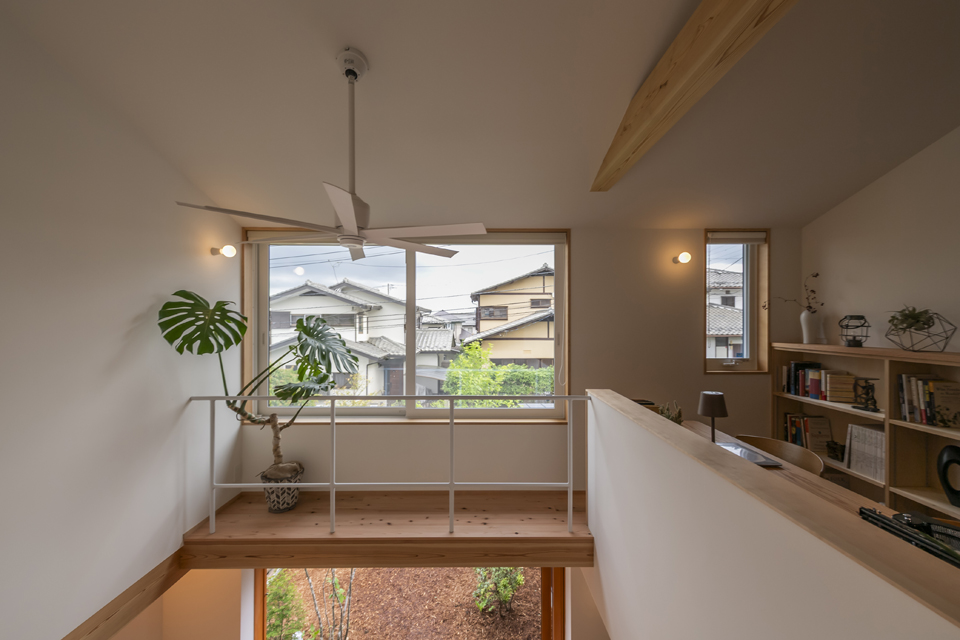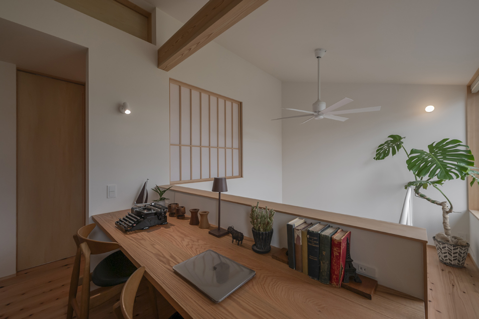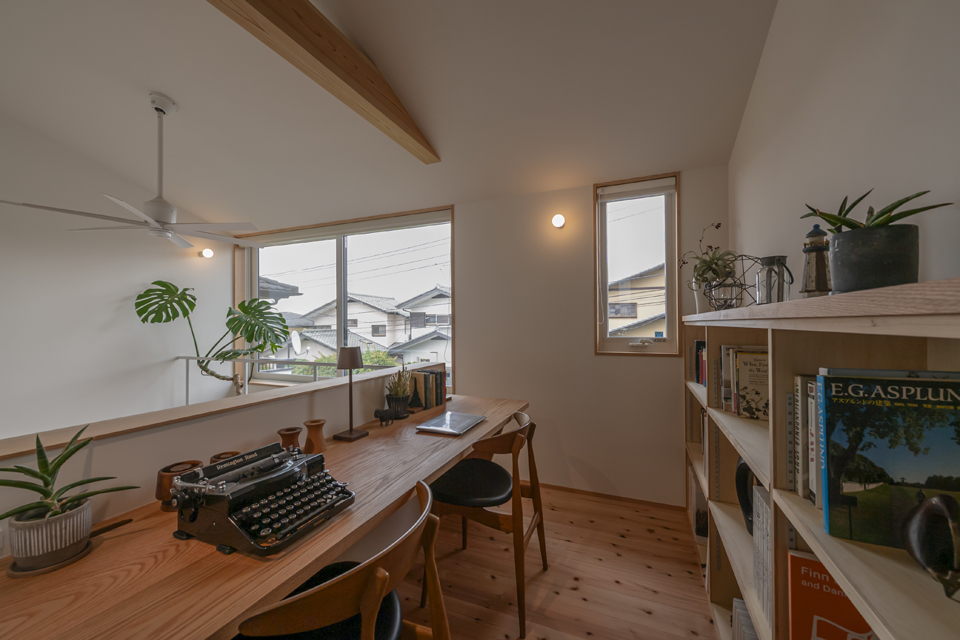 吹き抜けに面したワークスペースは、空を眺めながら過ごせる特等席です。