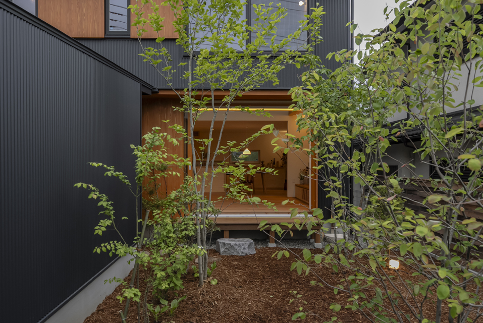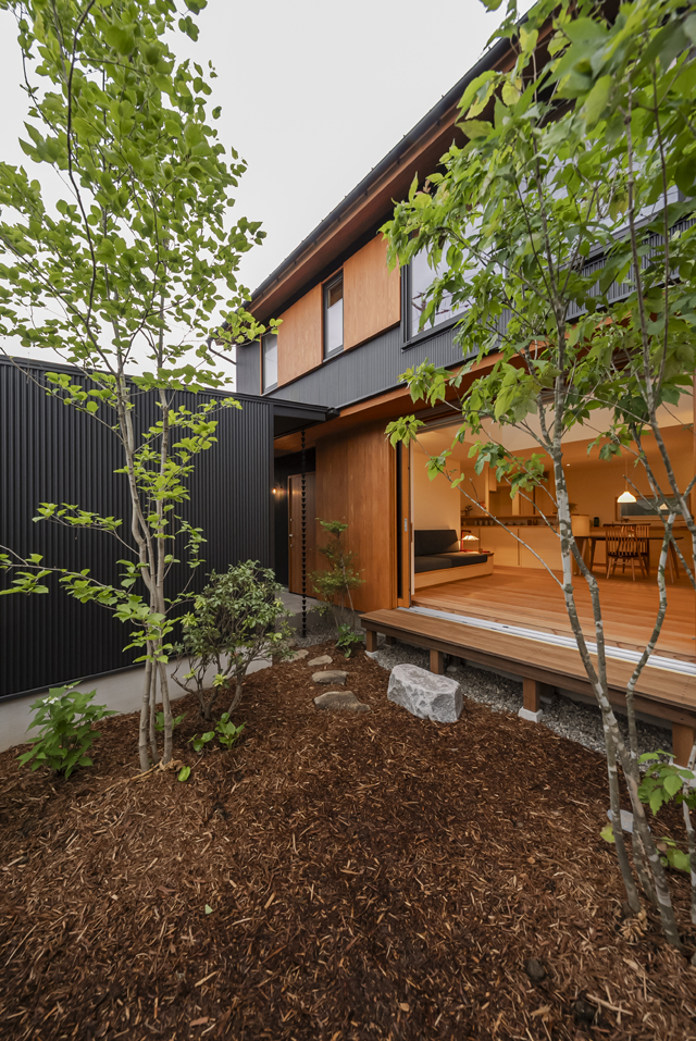 仕事や趣味の時間を心地よく支えてくれる、開放的で静かな空間に仕上がりました。庭にはドウダンツツジやジューンベリーなど、季節の変化を感じられる樹木を配置しました。新緑から紅葉、そして冬の枝ぶりまで、四季折々の表情が暮らしを彩ります。