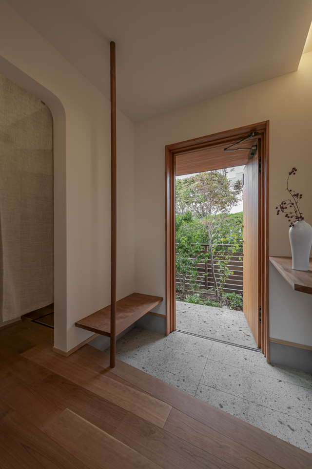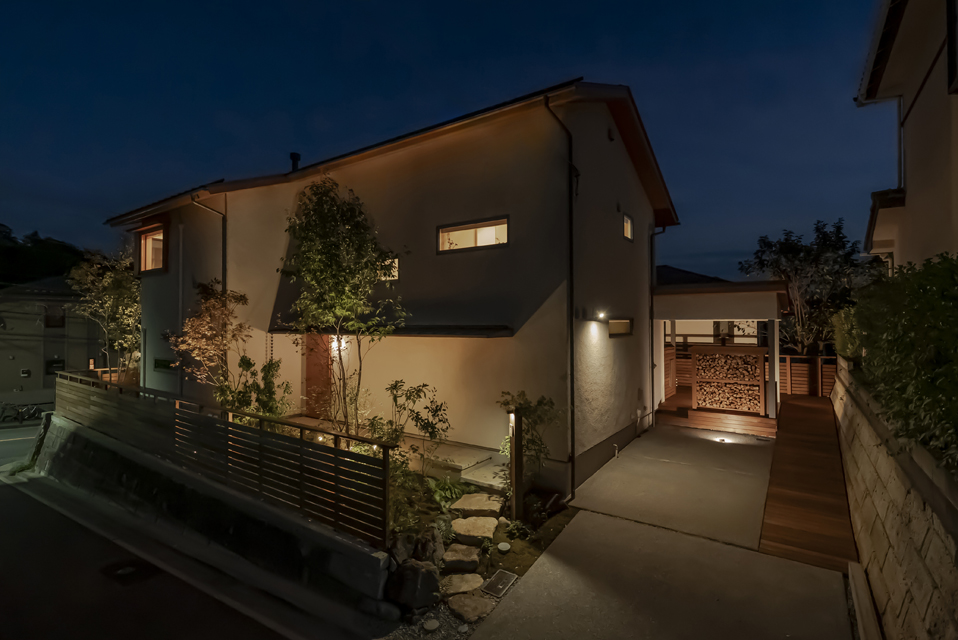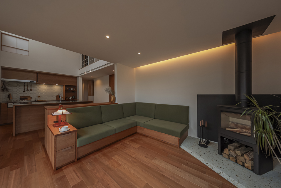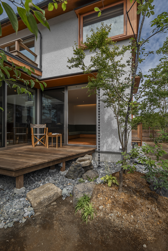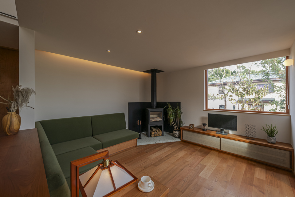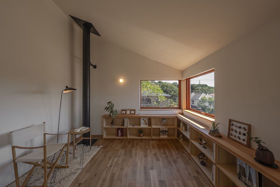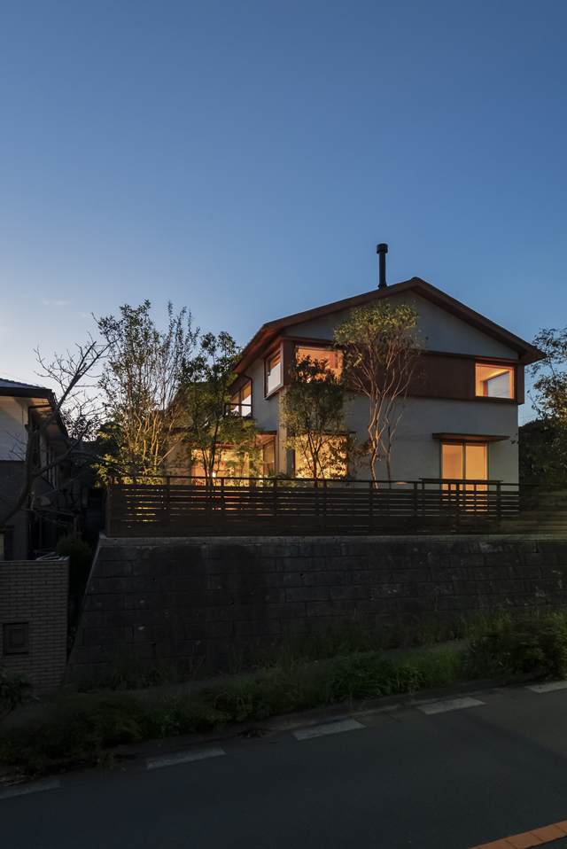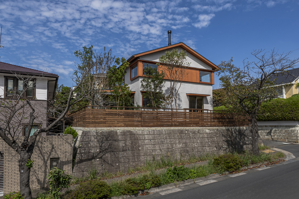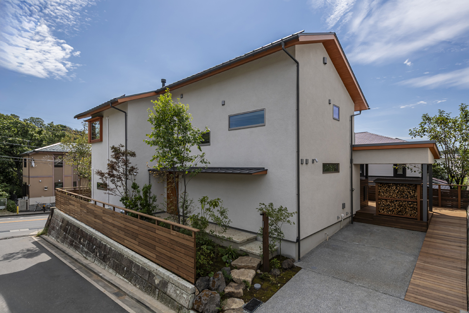 逗子市久木の閑静な住宅街。この穏やかな街並みに溶け込むように建つ延床47坪の住まい「閑日の栖(かんじつのすみか)」は、庭の緑を眺めたり、お気に入りの本を読んだり、薪ストーブの火を愉しんだり……そんなゆったりと流れる日々(閑日)を過ごしてほしいという願いから、この名は付けられました。