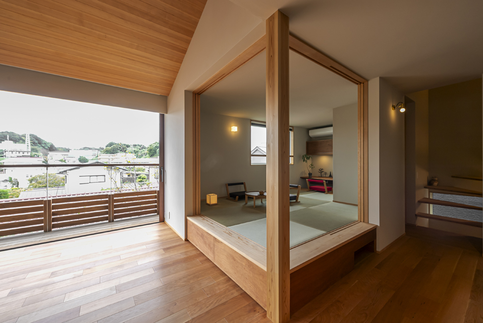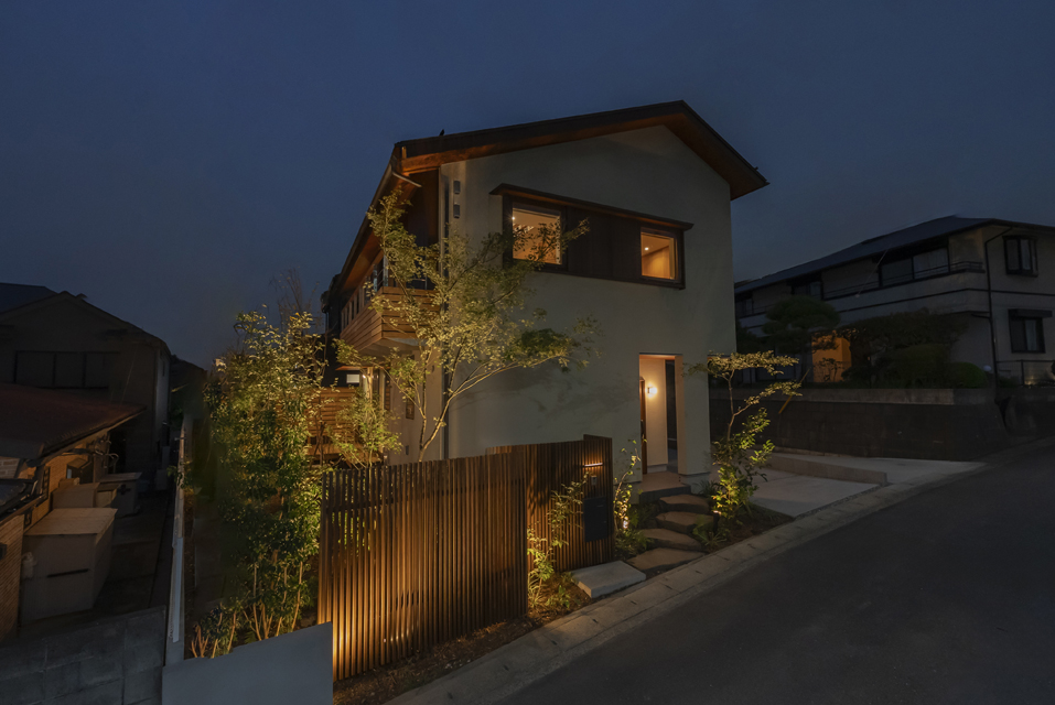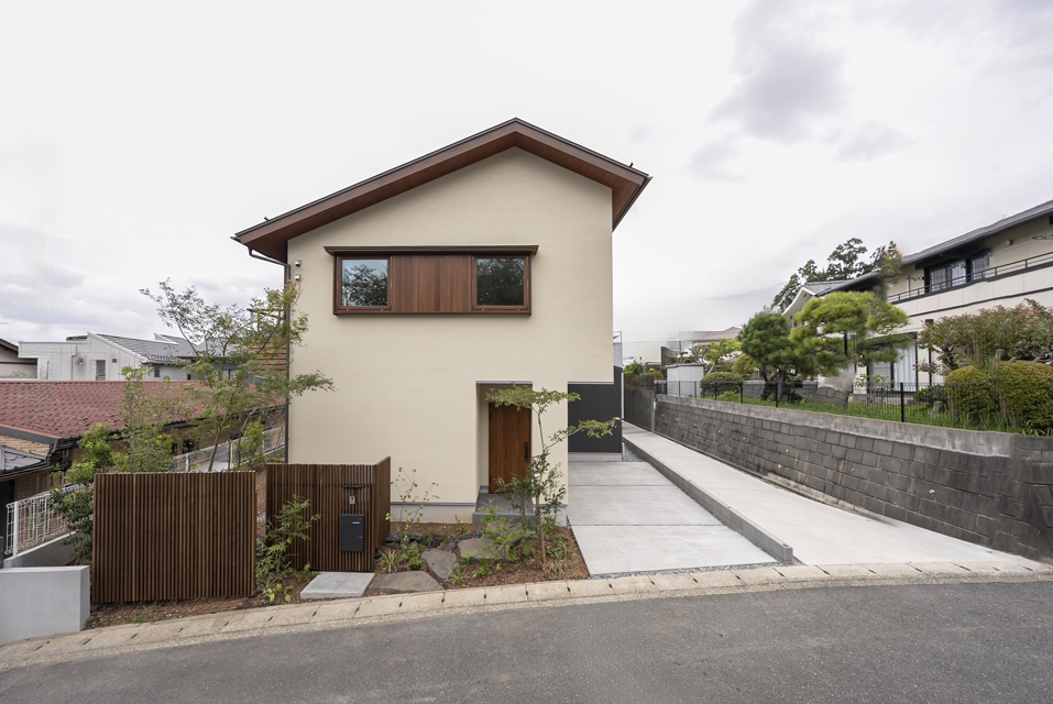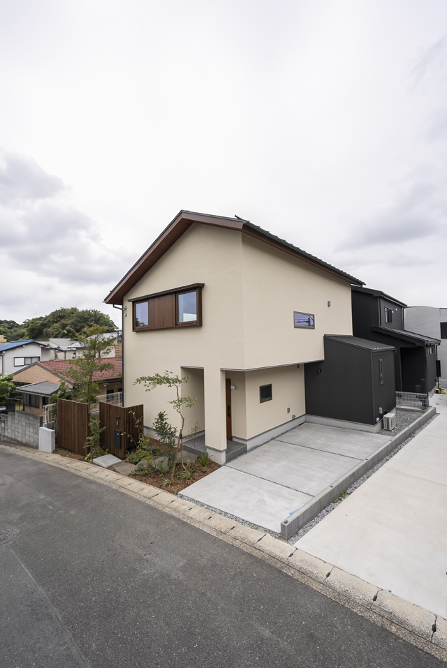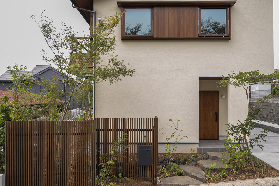大船駅からほど近い、鎌倉市玉縄の閑静な住宅地。南へと視界が抜けるゆるやかな傾斜地に建つ、延床約35坪の住まい「悠望(ゆうみ)の家」。「悠望」という名には、時間や空間が遠くまで続いていくような、ゆったりとした広がりと余裕を感じてほしい──そんな願いを込めています。窓の先に広がる景色を眺め、四季の移ろいを肌で感じる。そんな穏やかなひとときが、慌ただしい毎日の中で心を整え、未来へと続く豊かな暮らしを育みます。